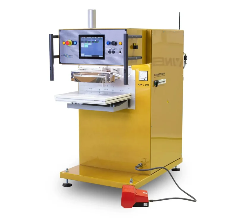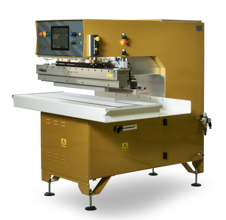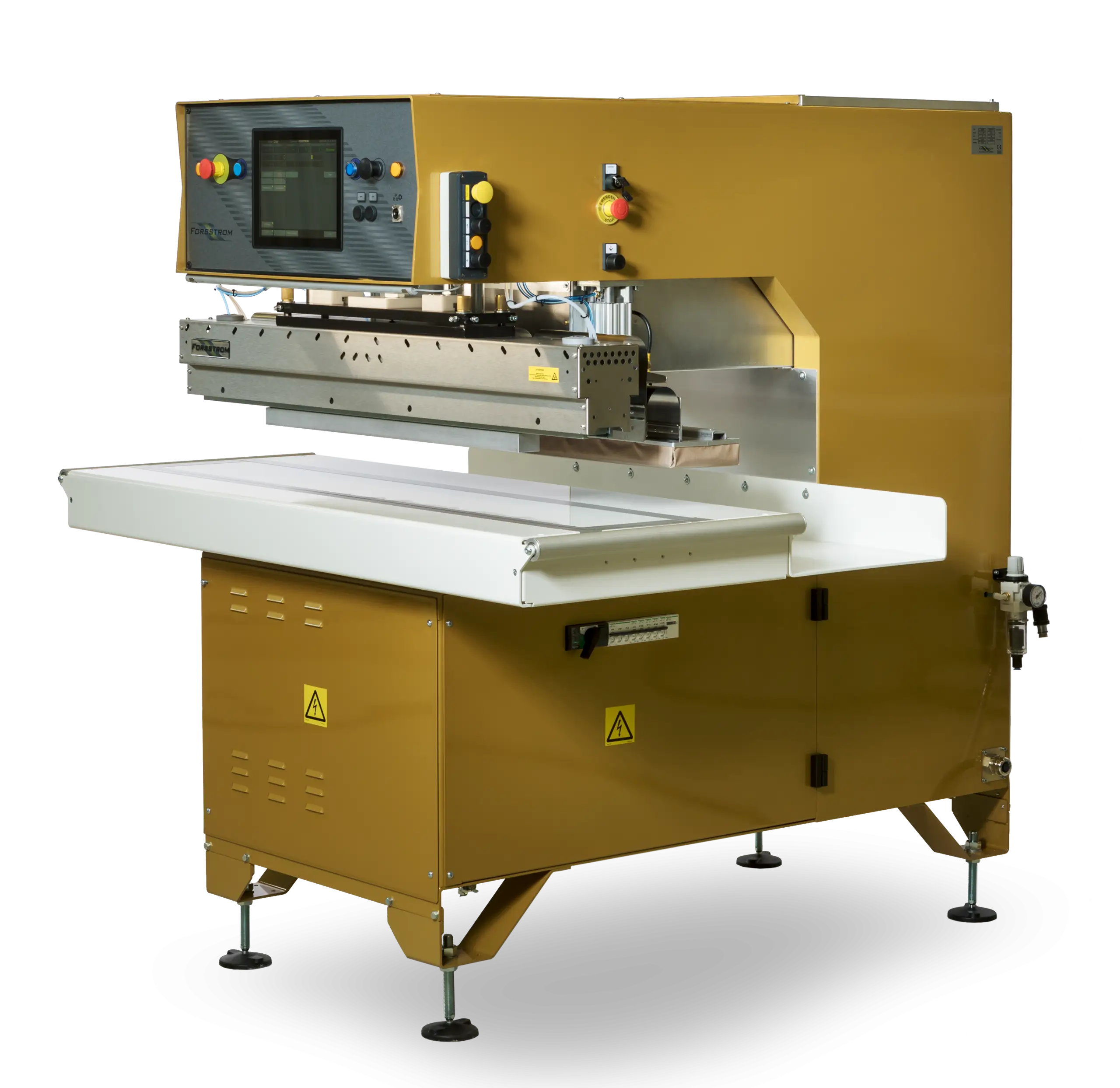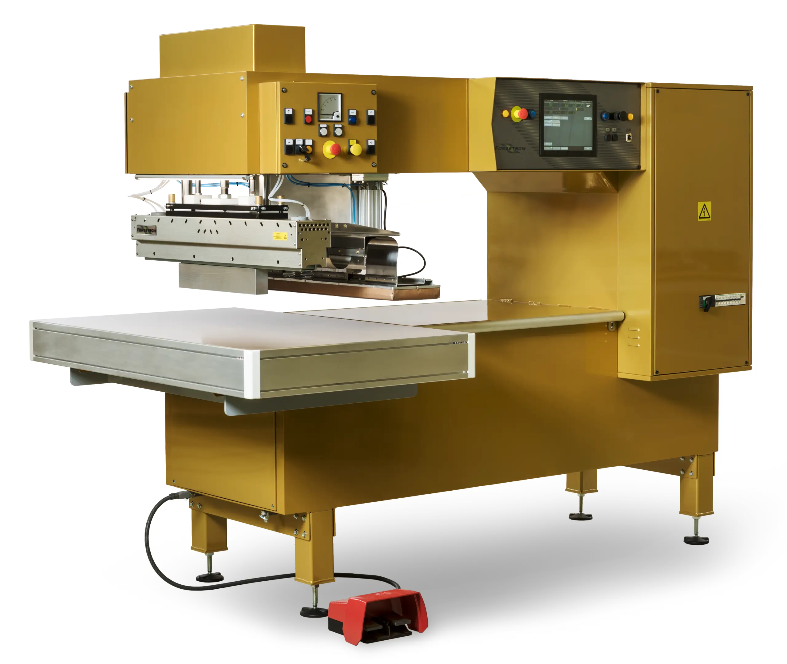 Le site Forsstrom TDP est une machine de soudage HF mobile dans le sens de la longueur avec un pied TD stable. Sur les côtés de la machine se trouvent une ou deux plates-formes de travail sur lesquelles l'opérateur de la machine se déplace pendant le processus de soudage. Cela permet d'utiliser efficacement toute la longueur de la table. La longueur de la table de soudage est adaptée individuellement aux besoins du client.