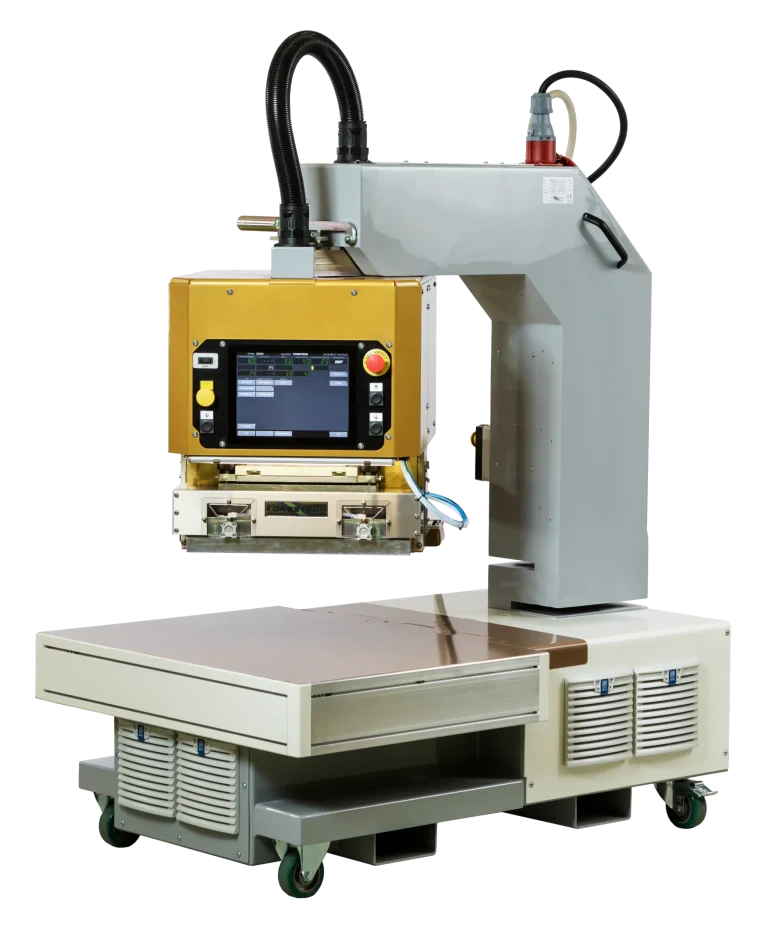 La machine est également mobile sur roues afin de pouvoir souder des bâches lourdes et de grande taille sans avoir à les déplacer.