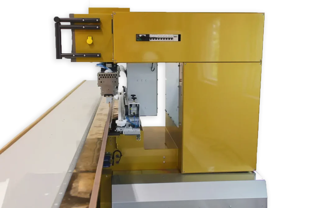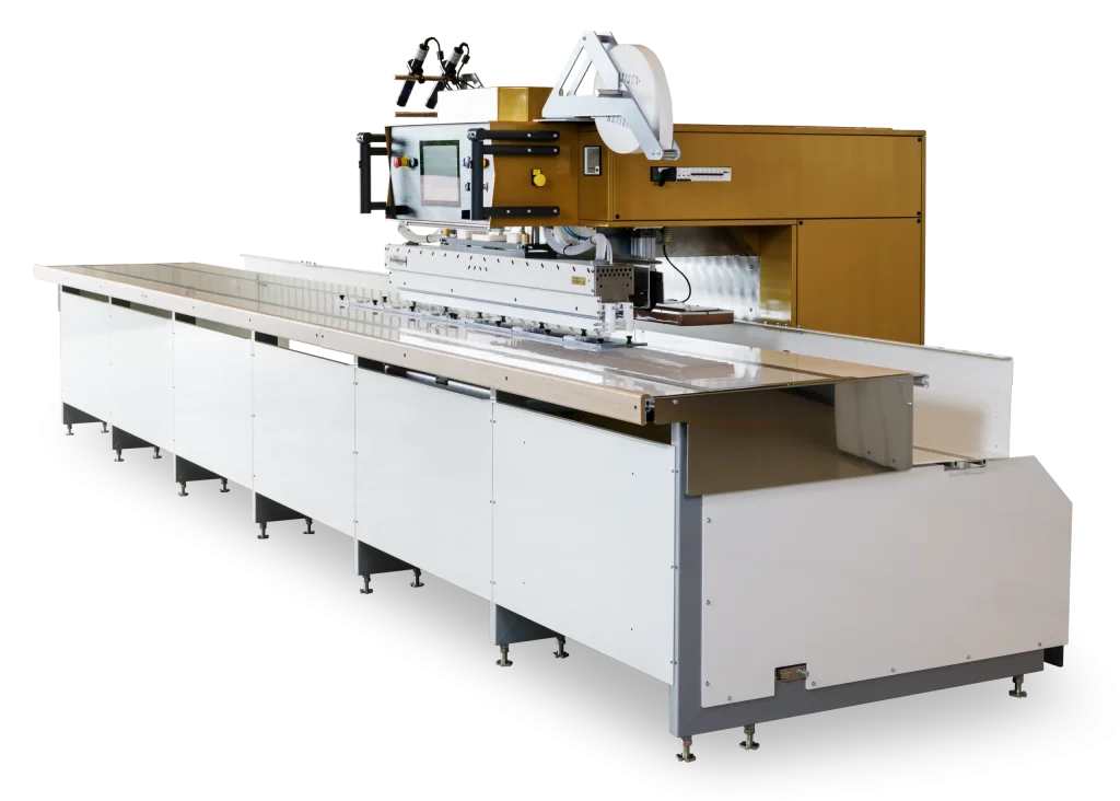 Nous fournissons le TDW-Mega (16-25 kW) avec une table de n'importe quelle longueur équipée d'un bac pour le stockage des matériaux. Ce modèle peut également être équipé d'une longueur de course étendue, ce qui augmente la flexibilité de la production en permettant de manipuler des épaisseurs de matériau plus importantes.