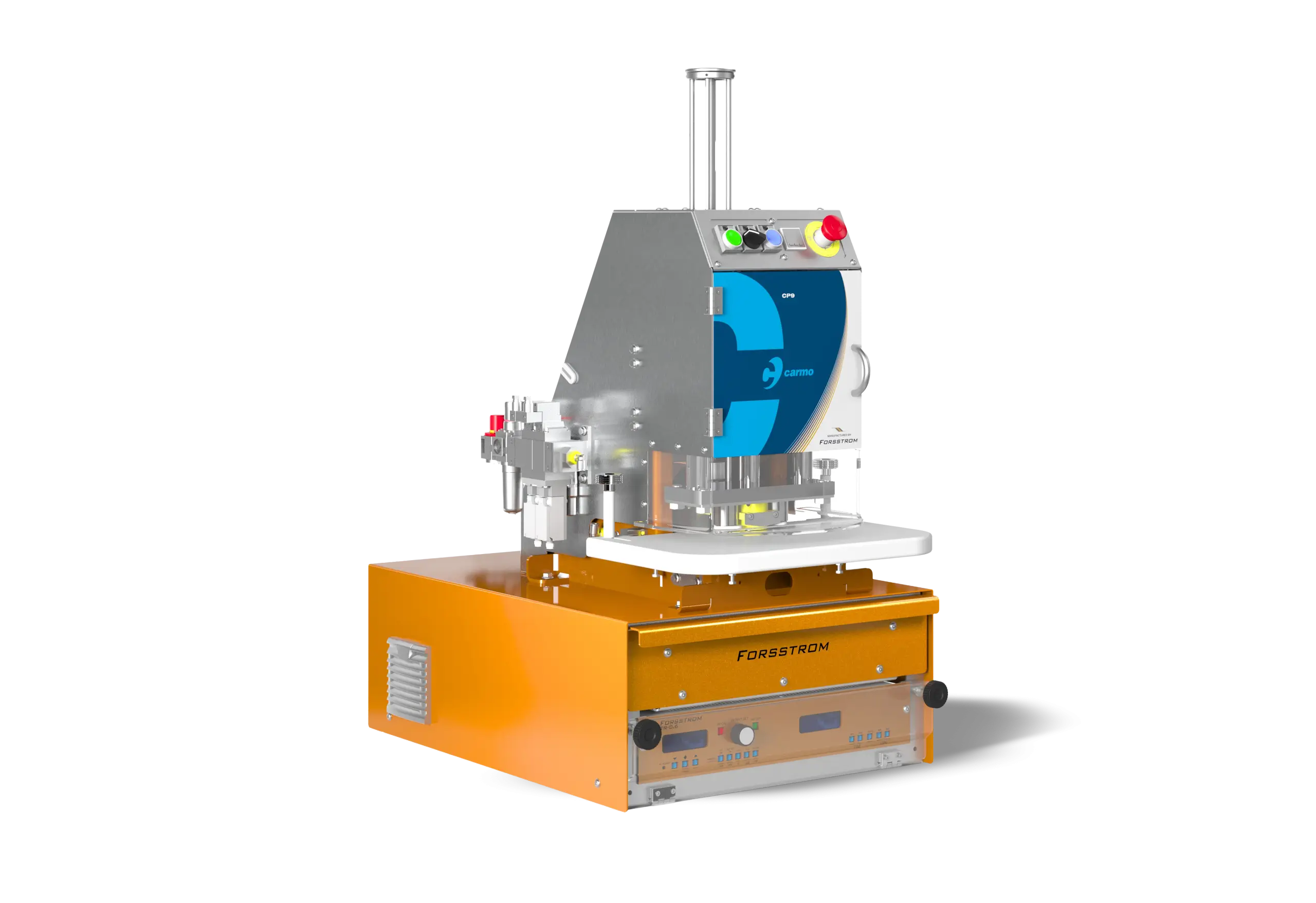 Les entreprises Forsstrom et Carmo ont développé ensemble la série CP9. L'objectif était d'optimiser le processus de fabrication pour le soudage d'œillets de bâche. Ils ont réussi à développer une machine qui effectue la pose, le poinçonnage et le soudage d'un œillet en plastique en une seule opération (processus tout-en-un). La CP9 vous permet ainsi d'obtenir le temps de production le plus court possible. La CP9 peut être couplée à une machine Forsstrom existante ou fonctionner seule.